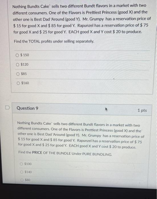 Solved Nothing Bundt Cake Sells Two Different Bundt Flavors Chegg Com